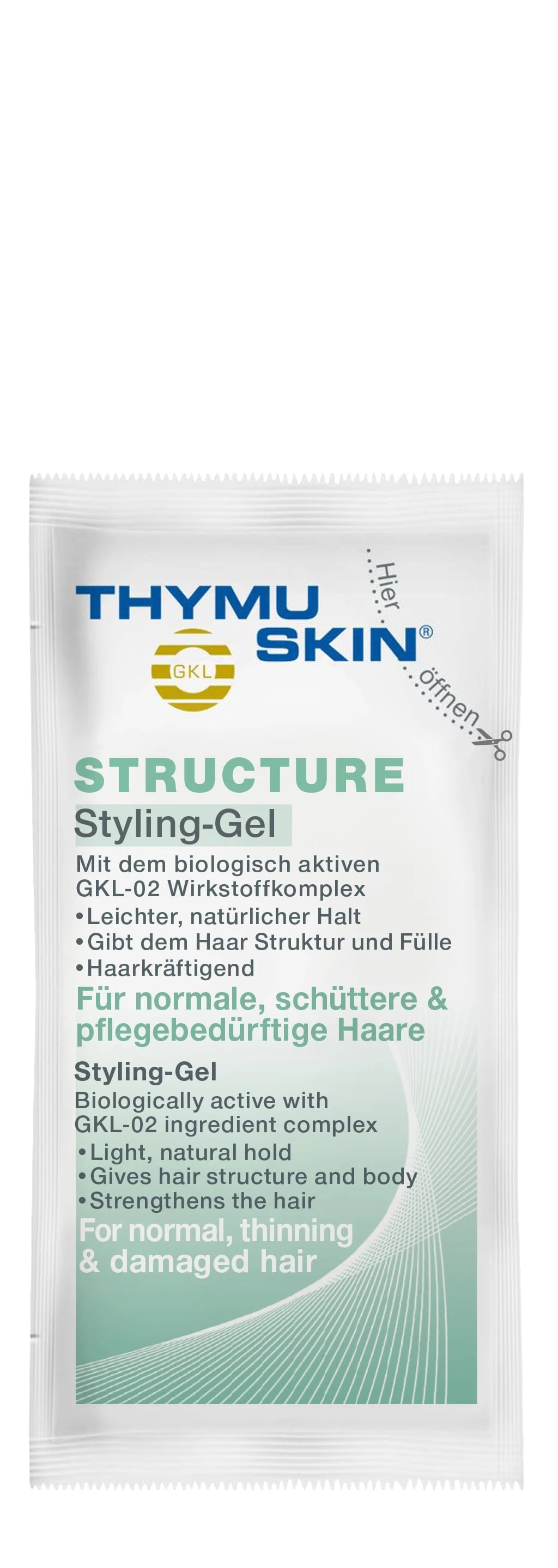 Il nuovo gel modellante Thymuskin Structure è un prodotto leave-in che rimane sui capelli e non viene risciacquato. Ripara, nutre e protegge i capelli in modo duraturo, dona lucentezza e morbidezza e rinforza i capelli. Applicato prima dell'asciugatura, sviluppa un effetto protettivo. In particolare, se applicato sui capelli asciutti, dona un effetto styling leggero e strutturante.