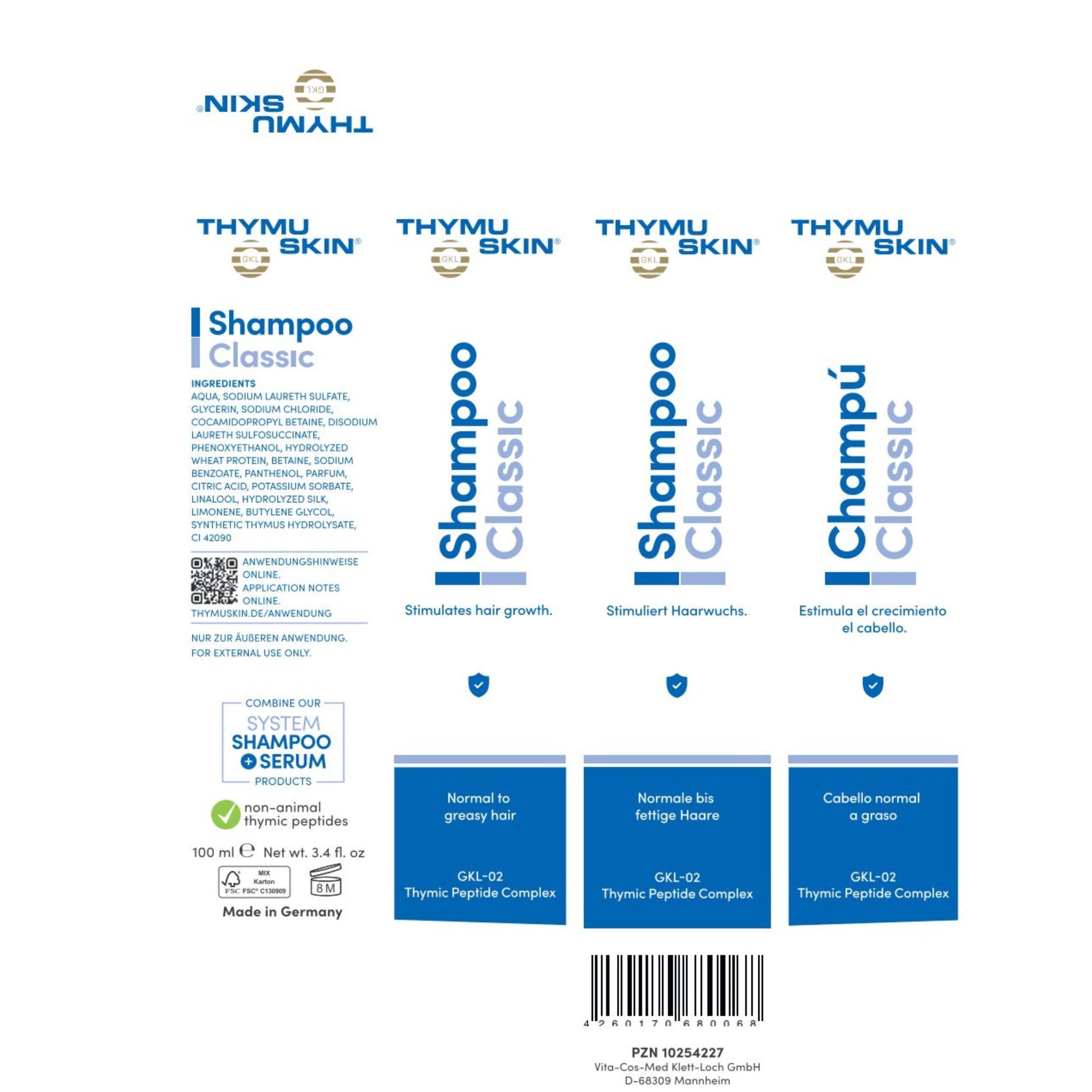 Thymuskin Classic (Shampoo und Serum) eignen sich insbesondere für die Anwendung bei genetisch bedingtem Haarausfall im Anfangsstadium. Durch die Anwendung wird neuer Haarwuchs unterstützt. Es verbindet eine optimale Wirkstoffkonzentration mit hoher Ergiebigkeit. Seit mehr als 40 Jahren wird diese Original-Rezeptur erfolgreich weltweit eingesetzt. Das pH-Wert hautfreundliche Reinigungs- & Pflegeshampoo reinigt die Kopfhaut mild von angesammelten Schmutzpartikeln und bereitet durch die Wirkstoffabgabe bereits auf die Anwendung mit dem Thymuskin Serum vor. Es ist speziell für normale bis fettige Haare geeignet.