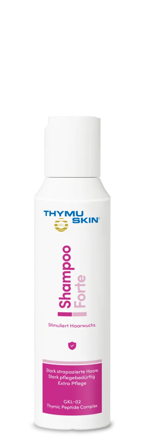 Es ist speziell für strapazierte Haare geeignet. Für beste Resultate empfehlen wir die Anwendung als System: Thymuskin Shampoo & Thymuskin Serum. Die Anwendung von Thymuskin bezieht sich immer nur auf das Symptom Haarausfall, nicht jedoch auf die Ursache.